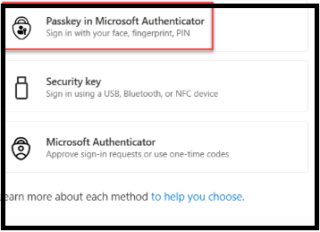 - Select the Passkey in Microsoft Authenticator from the available options: