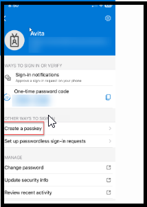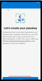 - Open Microsoft Authenticator on your mobile device and follow the steps by selecting Create a passkey: