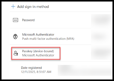 - Once complete, you should see Passkey as one of your available options under Security Info: