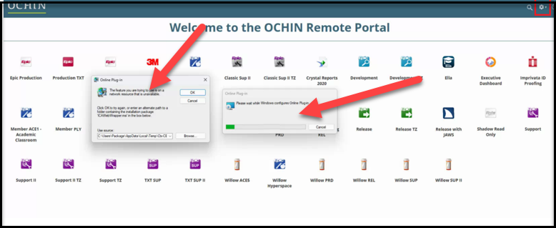 - When Epic is launched without the Citrix Workspace app installed, the customer receives a prompt for an Online Plug-in:
