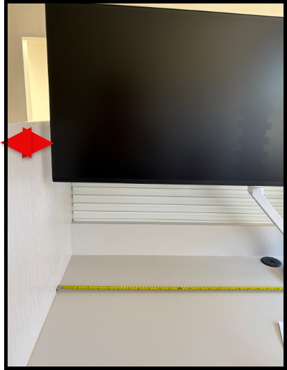 - Monitor mount should be approx. 3” from the back of the furniture/wall. The monitors will need to be centered where the technician will stand. If you are unsure, ask a member of the pharmacy team. The elbows on the monitors cannot extend outside of the workstation counter space or else staff will hit them when moving.