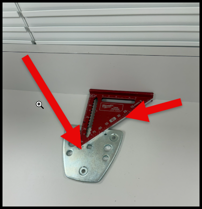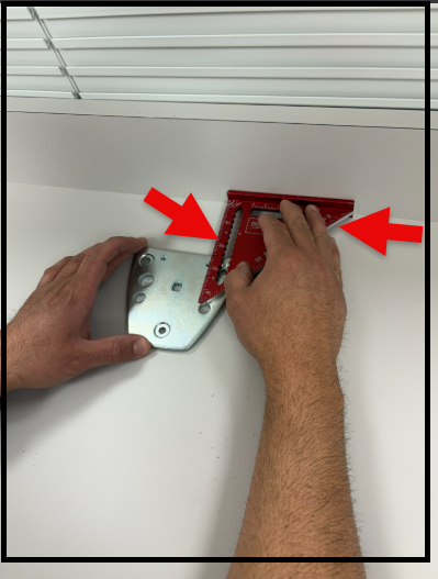 - Use the metal plate that goes under the counter as a stencil for marking the holes to be drilled. The larger bolt will need a 3/8” drill bit. The 2 smaller holes require a 5/16” drill bit.